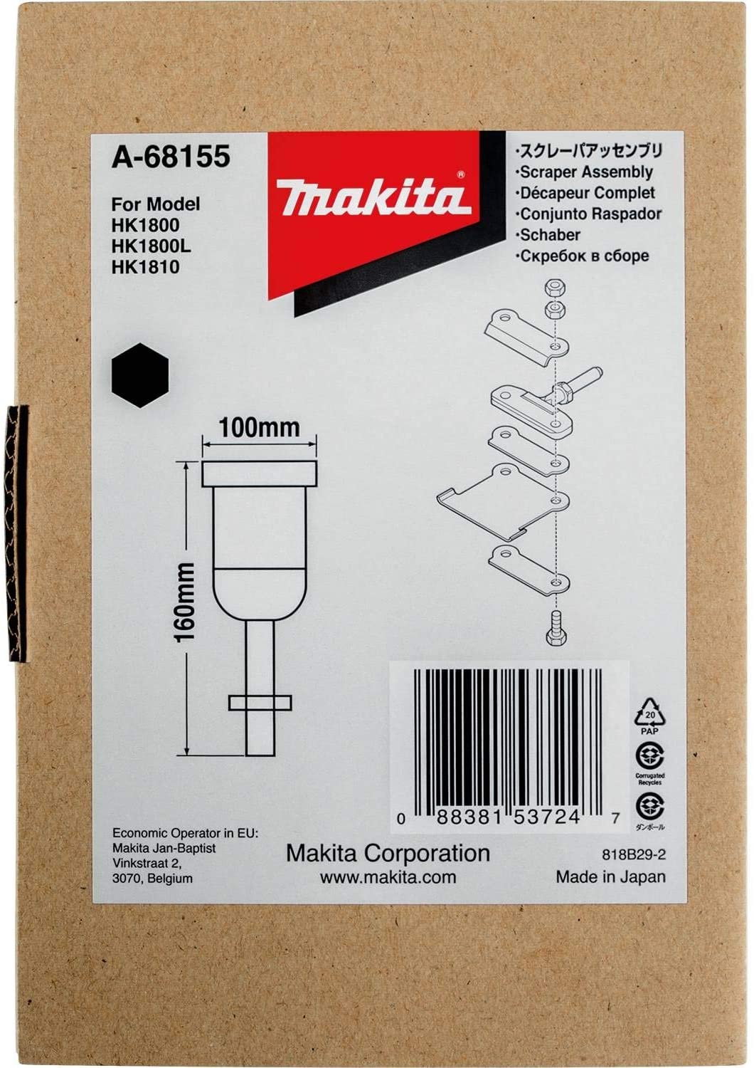 Product Description Makita Scraper Assembly for HK1810 Power Scraper Small shank type Fits the Makita Power scraper HK-1810. Includes one scraper blade. Used for general scraping of tile, linoleum floor and clean-up.