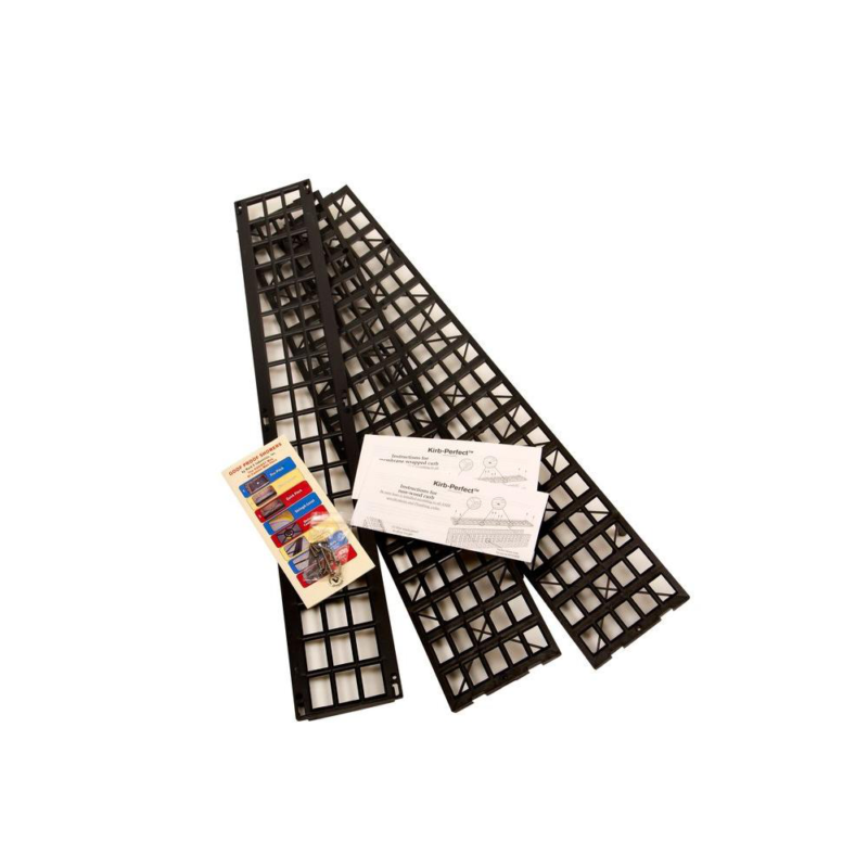 Supplied with two (1-1/4" long) and eight (3/4" long) stainless steel self tapping screws and illustrated installation instructions. Kirb-Perfect is 4-9/16" wide x 30" long and 5-1/2" high.