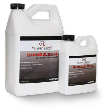 Modern Stones Shine & Seal is a water based topical sealer designed to provide gloss, clarity and color enhancement. Its unique blend of acrylic polymers offers advanced U.V. resistance and protection from the harshest types of stains. Coverage depends on porosity of substrate and desired level of shine.