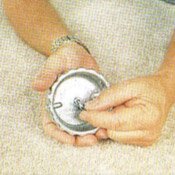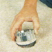 Quick, neat and simple carpet repair tool for professional carpet repairs. Utilizes remnants or carpet from hidden areas, such as closets. Perfect for burns, stains, rips, tears and other small damage. Includes 3 Insta-HoldTM pressure sensitive patches and 4 blades. What this cutter does: Simply take the cutter and place it on the area of the carpet you want to remove (cutter covers 3" diameter). Press firmly and twist unit. This will cut out the bad spot. Then take the cutter and cut out a replacement patch from another piece of carpet, maybe an extra remnant you have, or any carpet source you want. This will make the exact same size piece to replace the one you just removed. Then use the white discs (see item picture), which are sticky on both sides to hold the patch in place. This is a very easy way to remove burns, stains, and tears.