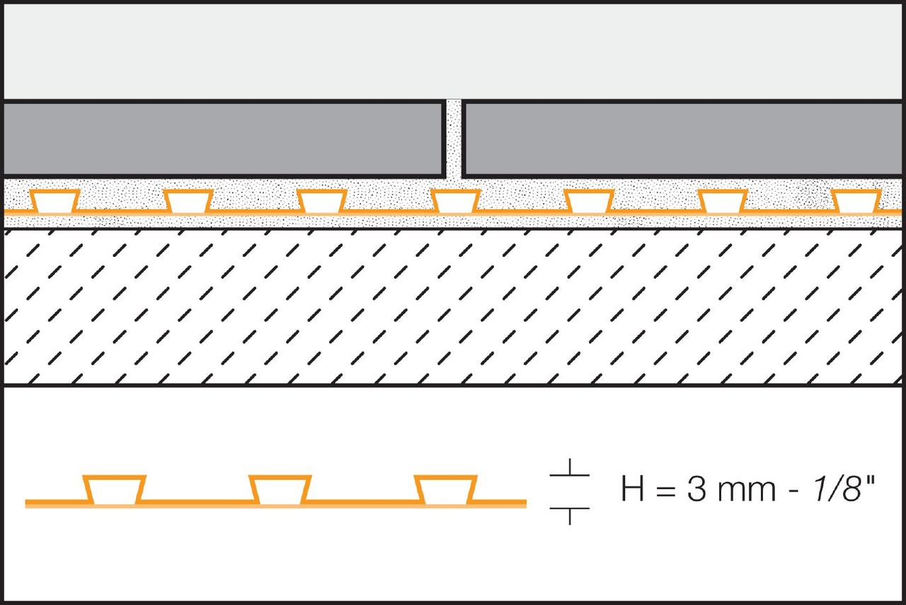 - Provides uncoupling, waterproofing, vapor management, and heavy load distribution to ensure the durability and integrity of tile installations